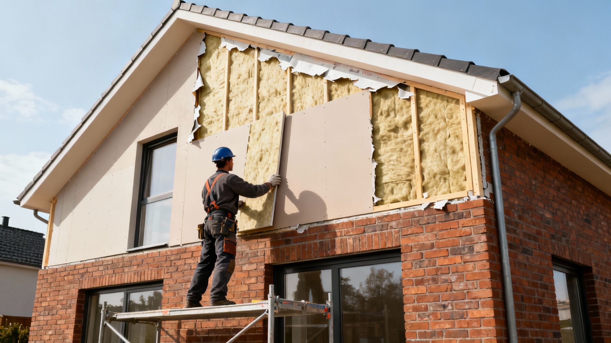 Hos NKL Tømrer & Snedker er vores erfaring ikke til at tage fejl af: Den absolut bedste og mest sikre metode er næsten altid at isolere udefra. Tænk på det som at pakke dit hus ind i en tyk, varm dyne. Det er præcis, hvad udvendig isolering gør. Den skaber en fuldstændig ubrudt klimaskærm, som effektivt lukker ned for de kritiske kuldebroer, der typisk opstår ved fundament, etageadskillelser og omkring vinduerne.