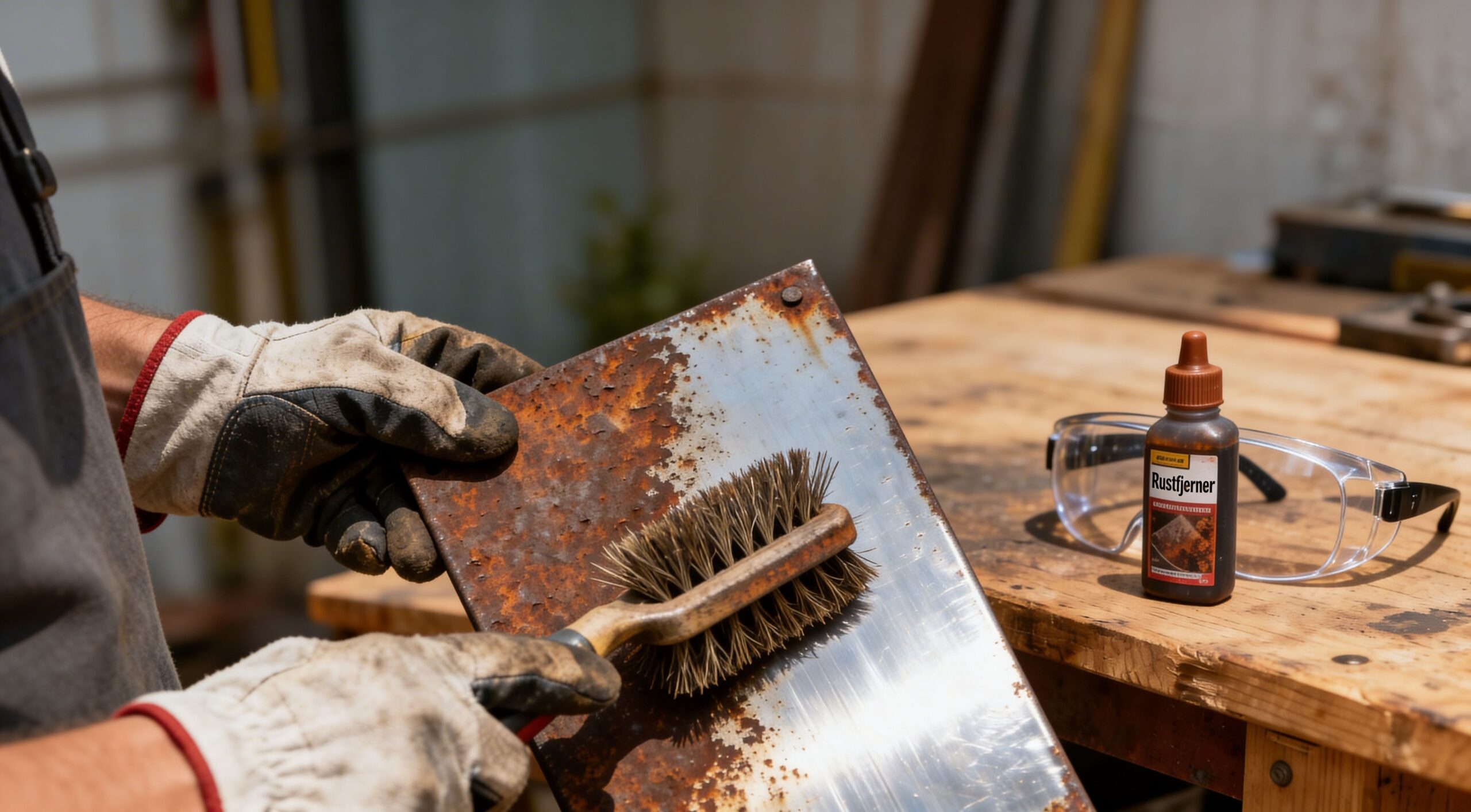 Først og fremmest skal overfladen forberedes. Få alt fedt, olie og løst snavs væk med en stålbørste og et godt affedtningsmiddel. Jo renere metallet er, jo bedre kan kemien trænge ind og arbejde. Og så til det vigtigste: din sikkerhed. Når du arbejder med syreholdige produkter, er syrefaste handsker og sikkerhedsbriller ikke til diskussion. Sørg for god ventilation – arbejd helst udenfor, eller åbn som minimum et vindue og en dør.