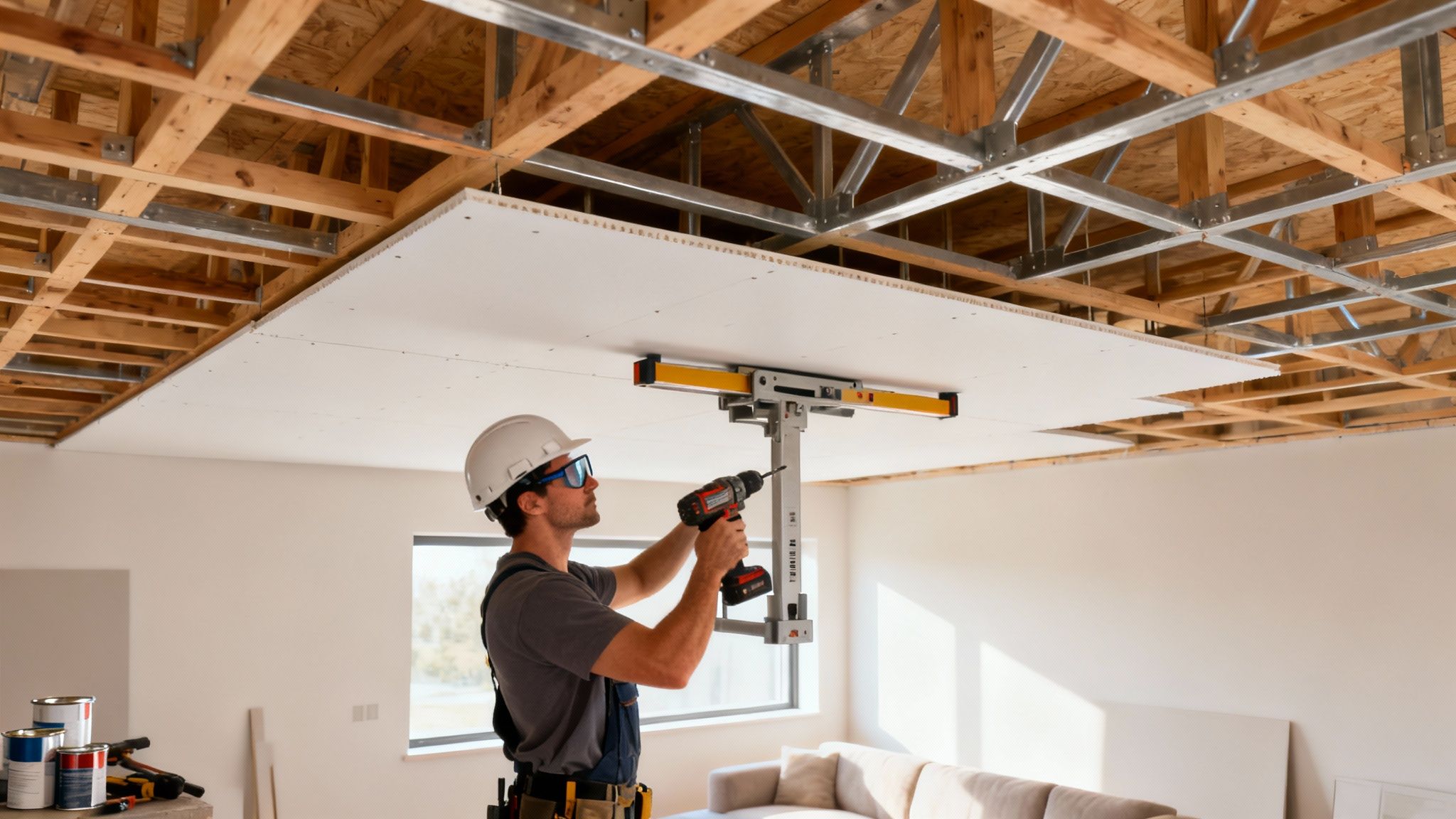 En pladehejs holder pladen stabilt presset op mod loftet, så du har begge hænder fri til at skrue. Det handler ikke kun om at undgå en øm ryg; det sikrer også en langt mere præcis montering.
