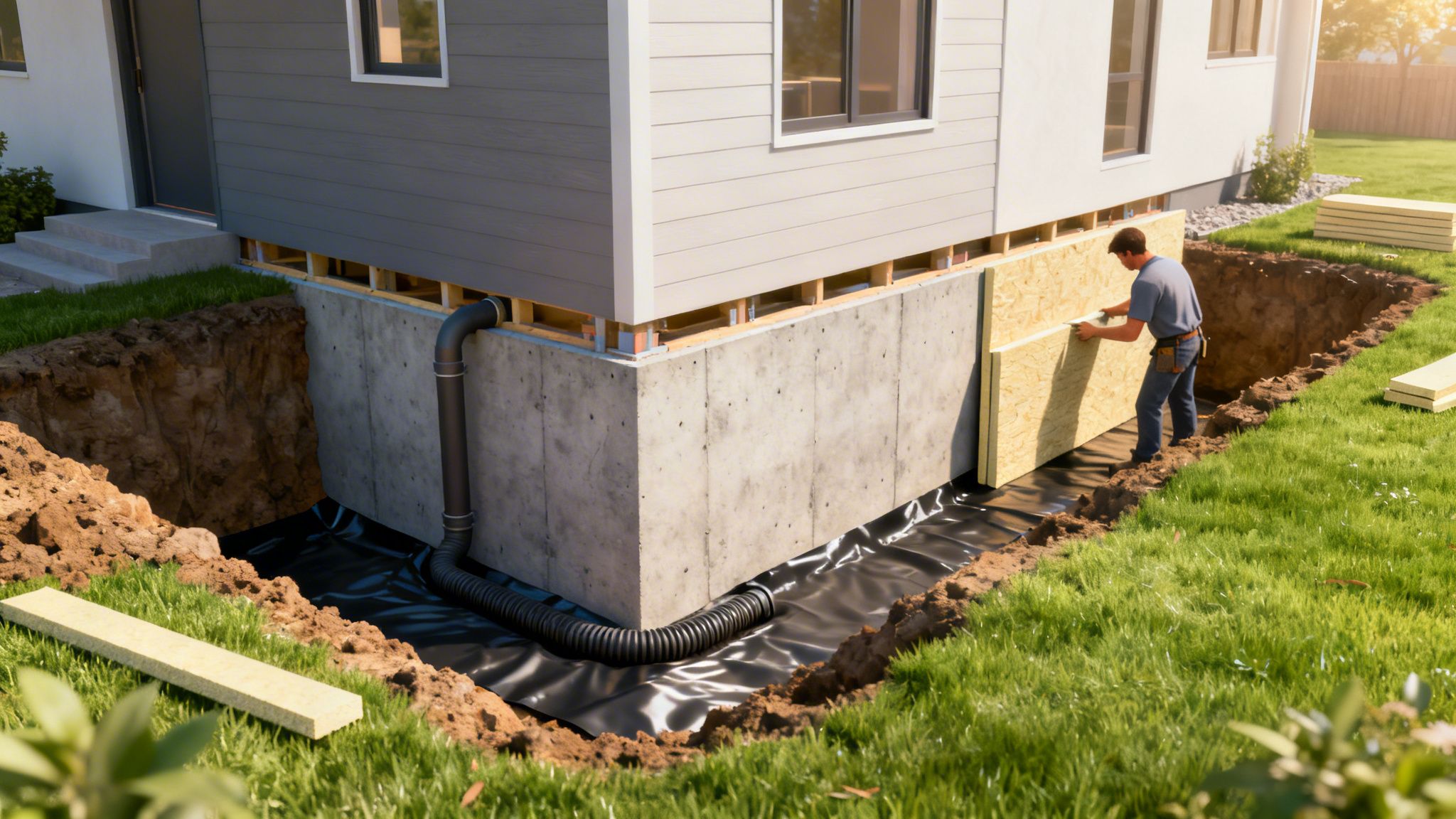 Lige så vigtig som isoleringen er det system, der holder fugten væk. Forestil dig det som en to-trins beskyttelse af dit fundament: et omfangsdræn og en grundmursplade.