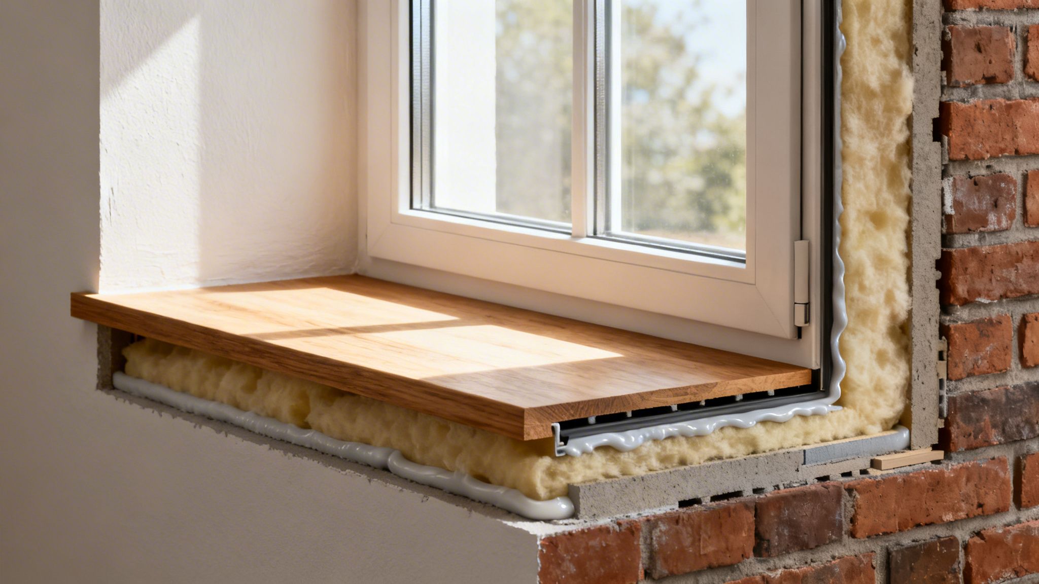 - Specialtape: Den tapes omhyggeligt fast med en specialtape, der er designet til at klæbe permanent til både vindueskarm og dampspærrefolie.
