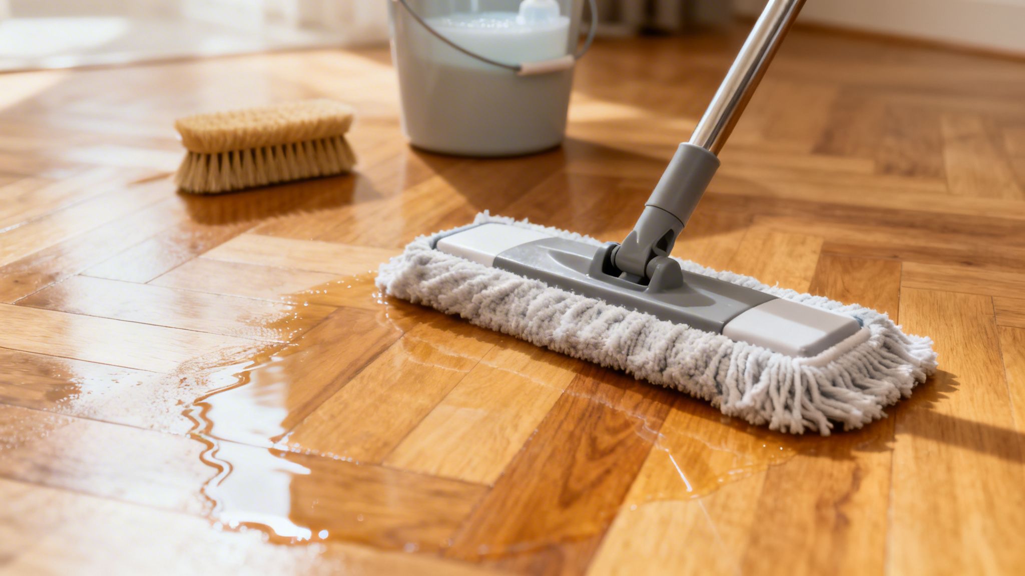 Et godt håndværkertrick: Gør det simpelt. En hårdt opvredet klud, der næsten føles tør, er din bedste ven. Følg doseringsvejledningen på din pH-neutrale sæbe, som var det en bageopskrift, og brug altid to spande. Én til sæbevand og én med helt rent vand til at skylle moppen i. Det alene kan forvandle resultatet.
